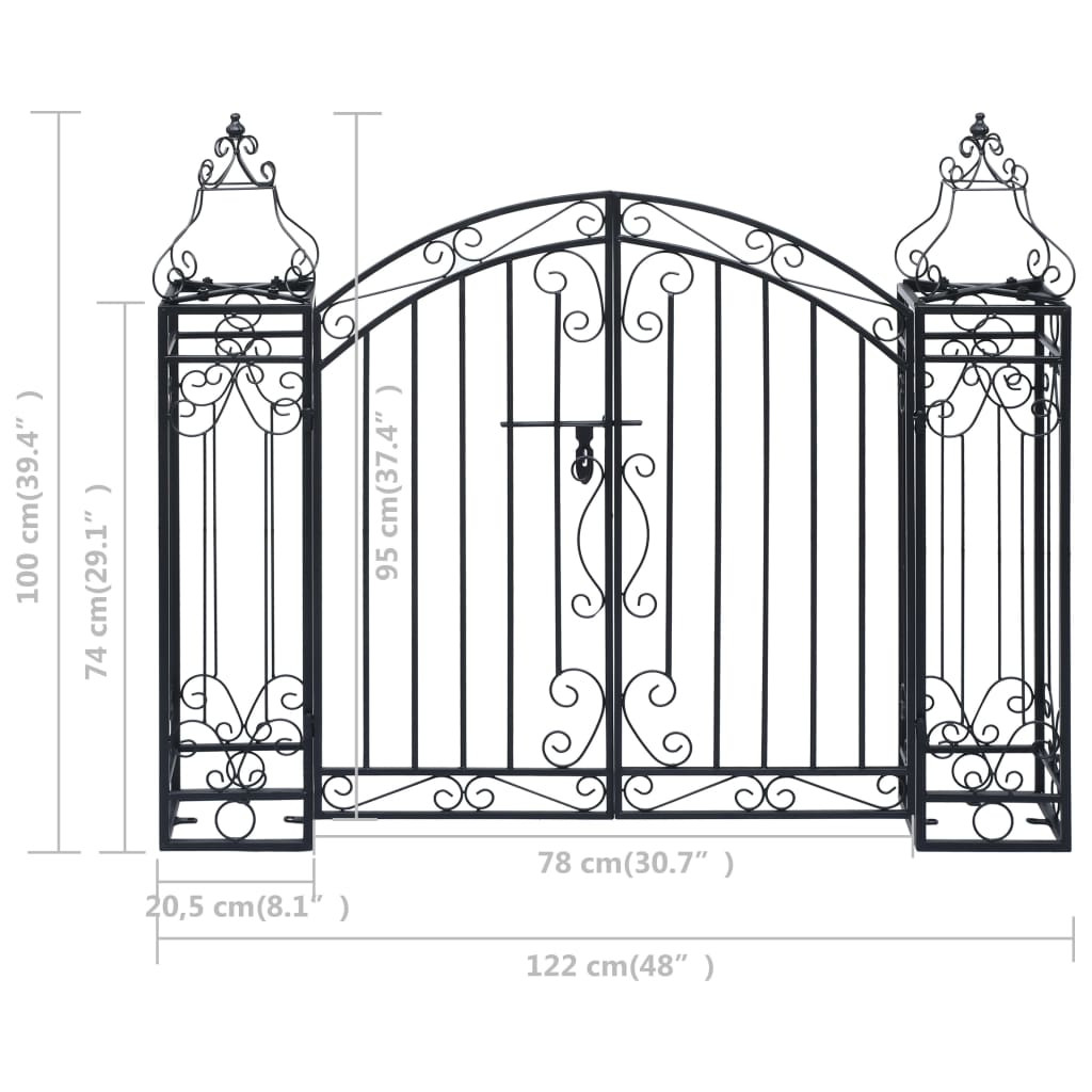 Díszes kovácsolt vas kertkapu 122 x 20,5 x 100 cm
