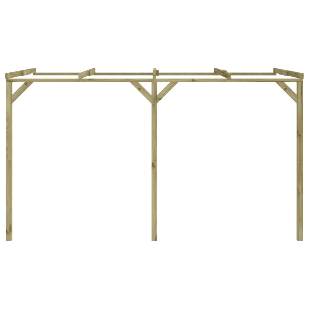 Ez a zöld impregnált fenyőfa fali pergola rendkívül masszív, strapabíró és rothadásálló. Választhat, hogy polikarbonát panelekkel kívánja-e lefedni a tetőt, mely esetben a pergola tetejének előnyös, lejtős dizájnja lehetővé teszi, hogy a víz lefolyjon róla.